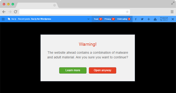 Sur.ly features a complex and time-tested mechanism that allows it to judge whether a site is safe with family-friendly content or not safe for a reason, such as an adult or malware-infected content. It relies upon a constantly growing database of web reputation profiles, combining various data from multiple sources, including user reports and algorithmic verdicts given by Google Safe Browsing and other services.