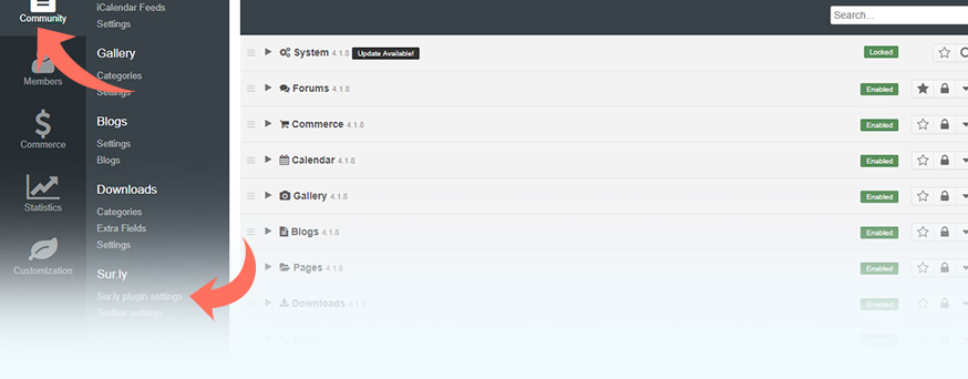 Go to Community → Surly to access the plugin settings.